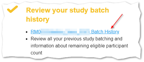 - Open your batch history (there is a link in your invite and reminder email as well as on the batch request form).